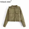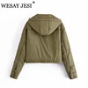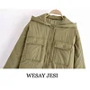 WESAY JESI Women Clothing Coat TRAF ZA 2021 Warm Hooded Parkas Outwear Casual Loose Long Sleeves Chic Zipper Female Jacket Coat