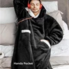 Winter 2021 Blanket Lengthen Vertical Pocket Flannel Women Hooded Lazy Blanket Flannel Lamb Wool TV Blanket For Men Hoodied