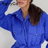 BerryGo Elegant royal blue Za jacket women winter coat Long sleeve lapel sash quilted coats Casual loose pocket down parka women