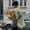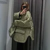 Women Coat Autumn Winter Loose Cotton-Padded Jacket Fashion Long Sleeves Pocket Army Green Outwear Office Lady Elegant Warm Coat