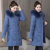 2021 Winter Women Jackets Padded Coats Fur Collar Medium Long Hooded Parkas Feminina Down Cotton Jacket Plus Size Jacket 4XL 586
