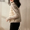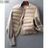 OLOME 2021 Women Autumn Winter Jacket Patchwork Knitted Cotton Padded Coat Parka Women's Jackets Coat Round Neck Warm Fashion