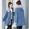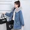 New Winter Denim Jacket Women's Real Fox Fur Collar Plus Fleece Lining Denim Parka Coat Short Wash Jacket Women Streetwear