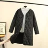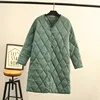 Fashion Argyle V Neck Bottoming Parkas Women Elegant Single Breasted Coats Women Solid Pockets Cotton Jackets Ladies Plus Size