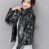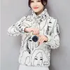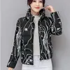 Winter Polyester Women's Down Jacket Stand Collar Long Sleeve Pockets Cardigan Slim Print Thick Fashion Office Lady Down Jacket
