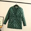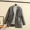 Fashion Simple V Neck Parkas Women Elegant Single Breasted Argyle Coats Women Bottoming Solid Cotton Jackets Ladies Plus Size