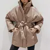 Fandy Lokar Simple Collected Waisted Parkas Women Fashion Coats Women Elegant Stand Collar Casual Cotton Jackets Female Ladies