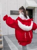 Ruffle Thick Warm Down Jacket Women 2021 Winter Cute Rabbit Ears Hooded Cotton Coat Ladies Loose Plus Size Tops
