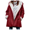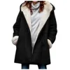 2021 Women Winter Plus Size Solid Coats Plus Velvet Coat Long Sleeve Horn Buckle Pocket Overcoat Hooded Warm Coats