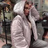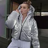 Bright Leather Shiny Long-sleeved Hooded Women's Jacket New Solid Color Zipper Thickening Casual Winter Coat Women Elegant