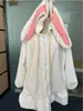 Kawaii Rabbit Ears Hooded Coats Japanese Korean Girl Warm Women Jacket Fall Winter New Sweet Soft Lambswool Ruffles Parkas White