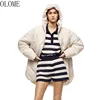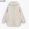 Olome ZA Women Beige Oversize Long Hood Parkas 2021 Jacket Autumn Winter Long Sleeve Buttons Pockets Female Warm Coat