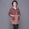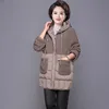 Middle-aged Mother Winter Jacket Fashion Hooded Parkas Thick Cotton Lamb wool Patchwork Coat Warm Loose Casual Women's Outwear