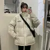 Cotton parkas women autumn winter all-match thickened PU leather jacket 2021 Korean version loose all-match preppy bread coat