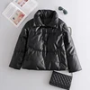 2022new New Winter Women Faux Leather Cotton Coat Casual Female Stand Collar Short Black Jacket Loose Thick Warm Outwear