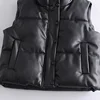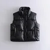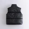 2022new Winter Women Vest Coat Pu Faux Leather Vest Jacket Casual Female Stand Collar Zipper Thick Warm Cotton Vest Outwear