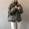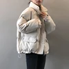 2022new New Winter Women Stand Collar Loose Thickness Padded Coat Streetwear Female Warm Bread Cotton Jacket Black Outwear