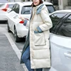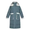 2022new Winter Women Hooded Long Padded Coat Streetwear Female Slim Big Pocket Thick Warm Cotton Jacket Windproof Snow Outwear