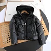 2022new Loose PU Leather Parkas Women Fashion Hooded Faux Leather Coats Women Elegant Solid Zipper Cotton Jackets Female Ladies