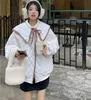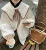 Autumn Winter Woman Coat Korean Cute Panelled Spliced Big Peter Pan Collar Lace-Up Diamond Stitch Quilted Jacket Dames Winterjas