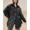Fashion Simple Turn Down Collar Parkas Women Elegant Single Breasted Argyle Coats Women Long Solid Cotton Jackets Ladies