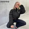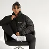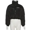 Women Winter Thick Cotton Puffer Parka Coat Casual Stand Collar Letter Print Female Cropped Jackets Fashion Black Zipper Outwear