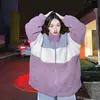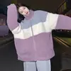 Lamb Wool Jackets Woman Color Matching Lose Stand Up Collar Student Korean Stitching Plus Velvet Winter Clothes Women 2021