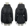 Casual Loose Arygle Hooded Parkas Women Fashion Solid Thick Short Coats Women Elegant Tie Belt Cotton Jackets Female Ladies