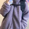 winter jacket Lamb Wool Jackets Woman purple Lose Stand Up Collar Student Korean Plus Velvet cardigan casual warm woman coats