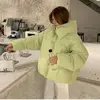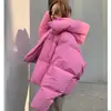 2021 Winter New Women Thickened Bread Down Jacket Student Loose Bat Sleeved Pink Green Solid Casual Coat Tops With Hooded Black