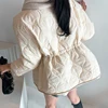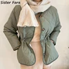 Sister Fara Winter Single Breasted Argyle Down Jacket Coat Women Drawstring Short Loose Warm Down Jacket Female Parkas Down Coat