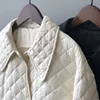 Sister Fara Winter Lapel Neck Argyle Down Jacket Coat Women's Single Breasted Down Jacket Female Loose Warm Parkas Down Jacket