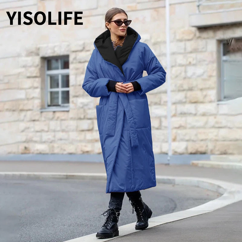 Women's Winter Elegant Coats and Jackets Big Pocket Padded Jacket Hooded Simplicity Belt Long Women's Cotton Clothes Winter Gift