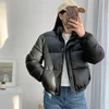 Woman Jacket Winter Thick Warm Short Parkas Women Fashion Black PU Leather Coats Elegant Zipper Cotton Jackets Female Ladies
