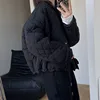ZURICHOUSE Casual Solid Lattice Quilted Jacket Women Fashion O-neck Loose Warm Cotton Padded Coat Female Short Winter Parka