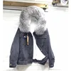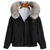 Women's Denim Parkas Winter Fashion Plush Hooded Stitching Baggy Coat Casual Long Sleeve Pocket Single Breasted Koreaanse Parkas