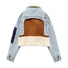 2021 Winter New Deerskin Velvet Denim Patchwork Jacket for Women Lambswool Thicken Short Locomotive Jacket Women