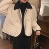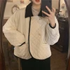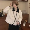 Women Cotton Clothes Coat Korean Loose Splicing Jacket Female Polo Neck Long Sleeve Winter Parkas White Outwear Mujer Chaqueta
