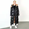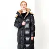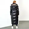 FAKUNTN long downWomen's Black jackets Senior luxury Winter 2021 high-collar hooded loose white duck down jacket for cold