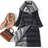 Women Double Sided Down Long Jacket Winter Turtleneck White Duck Down Coat Double Breasted Warm Parkas Snow Outwear 2022