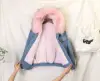2021 Thick Faux Fur Collar Denim Jacket Cotton-padded Jacket Women Winter Hooded Warm Jean Parkas Female Bomber Coat
