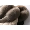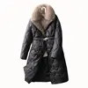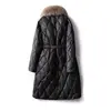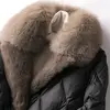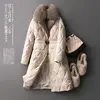 FAKUNTN mid-length Coat Women's coat light and luxurious temperament large fur collar waist down cotton jacket solid zipper
