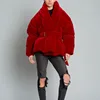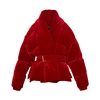 FAKUNTN new winter fashion women clothes Cotton-padded Clothes wine red color waist belts adjusted