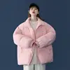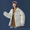 Parkas Women Men Cotton Padded Thicken Warm Winter Jacket Harajuku Stand Collar Coats Kpop Solid Color Parka Women Fashion WPA06