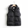 2021 Fall Winter Women's Solid Color Loose Drawstring Long Collar Quilted Cotton Jacket Women's Warm and Windproof Vest