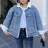 Women's Denim Parkas Winter Fashion Pocket Stitching Plush Splicing Coat Casual Koreaanse Long Sleeve Single Breasted Baggy Coat