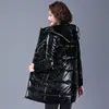Black Glossy Hooded Parkas Coat Women's 2021 New Winter Thick Cotton Padded Jacket Windproof Rainproof Warm Loose Outwear Female