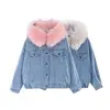 2021 Big Faux Fur Collar Denim Jacket Student Basic Short Parkas Female Bomber Coat Women Winter Hooded Warm Jean Jacket