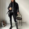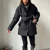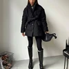 Women Elegant Single Breasted Cotton Jackets Female Ladies Casual Notched Parkas Women Fashion Tie Belt Solid Black Coats