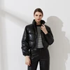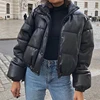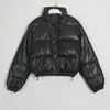 Solid Black Zipper PU Coat Ladies Streetwear Waterproof Autumn Winter Women Thick Warm Short Parkas Jacket